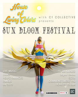 House of Living Colors and c1 collective present: The Sun Bloom Festival, an evening of panel discussions, live concerts, stunning drag and performance acts and a DJ line-up no hipster can resist. Curated by the House of Living Colors, Berlin's first and only BIPOC-focused (Black-Indigenous-People of Colour) drag and performance collective and awarded for the second time by Tag der Club Kultur, the eclectic house once again makes history with mic-dropping, critical thinking, out-of-this-world performance acts and BIPOC musical excellence, hosted by the legendary SO36.
